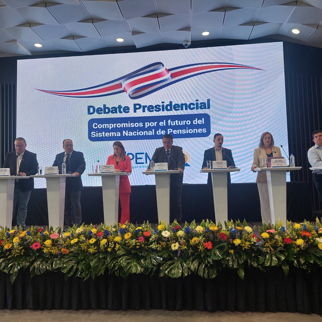 15 de los 20 candidatos presidenciales inscritos formalmente ante el Tribunal Supremo de Elecciones (TSE) toman la palestra este miércoles durante el debate Decisiones País 20230: Compromisos en Pensiones.