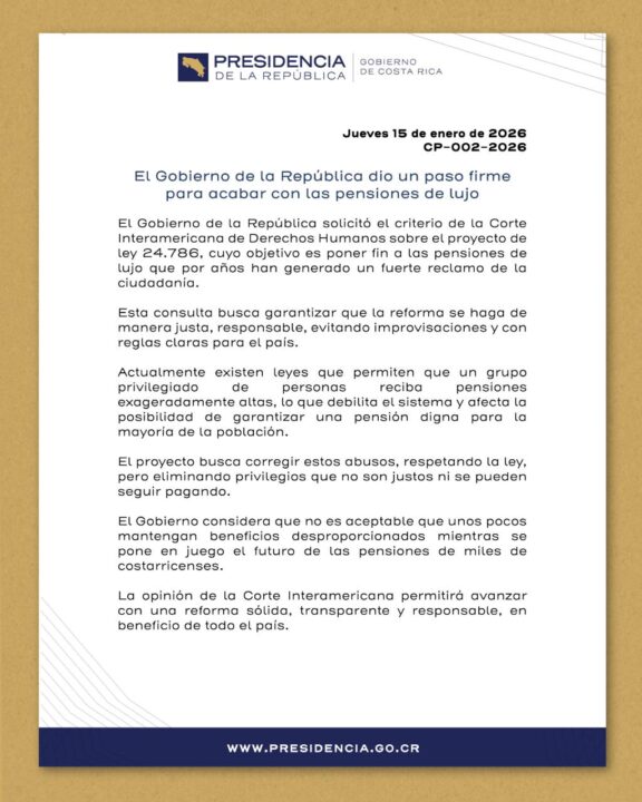 Con este comunicado la administración de Rodrigo Chaves anuncia un nuevo paso contra las pensiones de lujo, sin embargo el aspirante de la Unidad Social Cristiana sostiene que desde antes era posible tomar otras medidas.