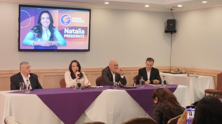 La candidata presidencial de Unidos Podemos, Natalia Díaz estuvo acompañada de sus candidatos a las vicepresidencias y de Juan José Andrade en el Hotel Crowne Plaza, Corobicí . Foto La Reacción